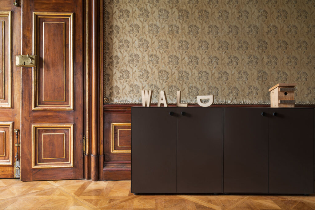 Natürliche Materialien, fein abgestimmt auf das historische Interieur mit Seidentapeten und Kronleuchtern, bildeten die Grundlage. Durch die hochwertigen Textilien von Kvadrat und ein durchdachtes Möbelsystem von Vitra konnte eine harmonische Verbindung zwischen Geschichte und Gegenwart geschaffen werden.